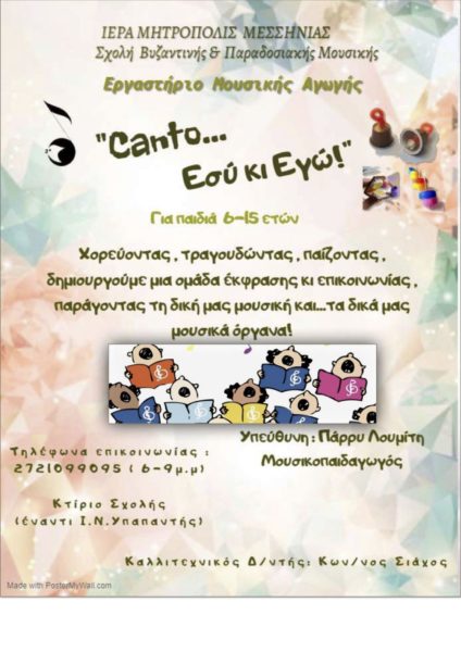 • Η ενίσχυση της Νεανικής Χορωδίας της Σχολής Βυζ. Μουσικής της Μητροπόλεως με παιδιά των Κατηχητικών Συνάξεων.