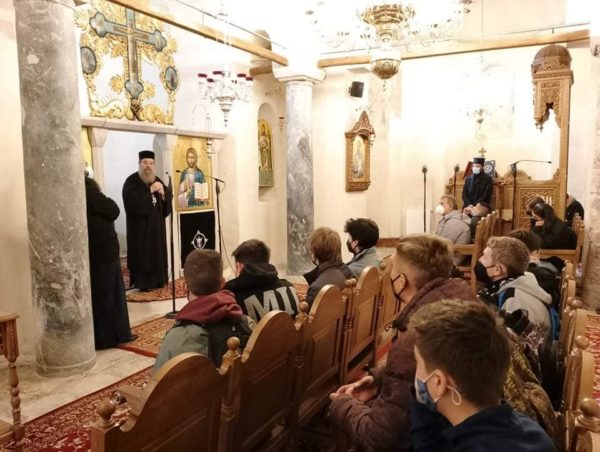 Ο Επίσκοπος, αφού ξενάγησε τα παιδιά, ανεφέρθη στην ιστορία του Βυζαντινού περικαλλούς Ιερού Ναού, και μετά μίλησε στα παιδιά για το τι είναι Θεός και τι η Εκκλησία, τη σχέση Θεού με τον άνθρωπο και τα υπόλοιπα δημιουργήματά Του κ.ά. Έπειτα έγινε γόνιμος διάλογος και απάντησε σε ερωτήματα των μαθητών… Στο τέλος τα παιδιά έλαβαν μικρό κέρασμα και μια πλαστικοποιημένη εικόνα ως ευλογία για την πρόοδό τους…