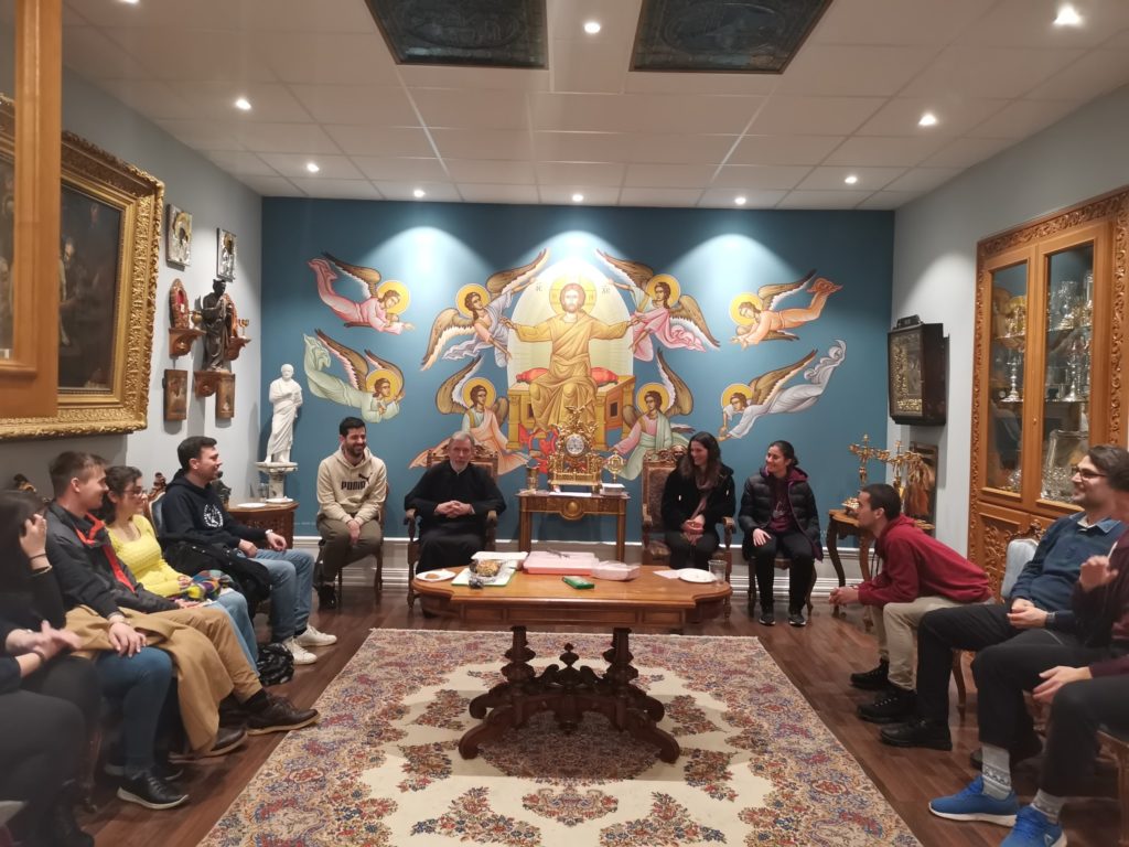 Όπως κάθε Πέμπτη, έτσι και χθες το απόγευμα, στις 7, έγινε η συνάντηση νεολαίας του Καθεδρικού Ναού Αγίου Γεωργίου Στοκχόλμης, στο Μουσείο Ελληνοχριστιανικής Κληρονομιάς, με ομιλητή τον Μητροπολίτη Σουηδίας κ. Κλεόπα και εξαιρετικούς συνομιλητές τη νεολαία.