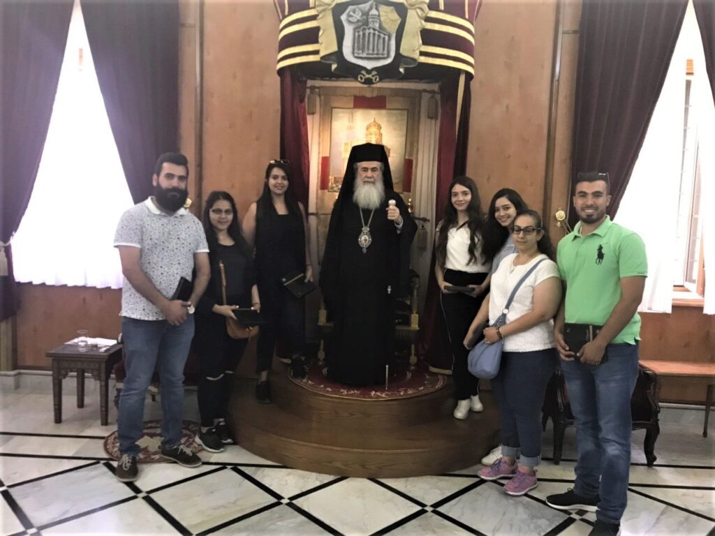 Επίκαιρη επίσκεψη των στελεχών και μελών των κατηχητικών σχολείων του Αγίου Γεωργίου της πόλεως Ραμάλα (RAMALLAH) στον Μακαριώτατο Πατριάρχη Ιεροσολύμων, κ. Θεόφιλο, από όπου η ως άνω αναμνηστική φωτογραφία.