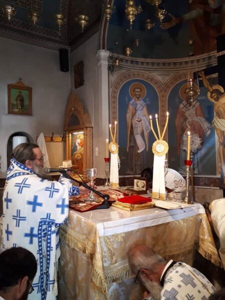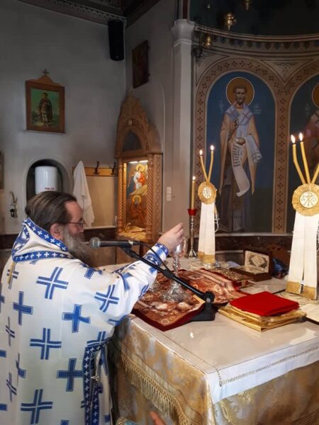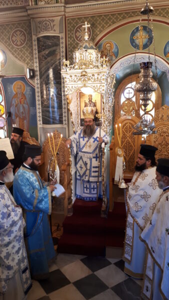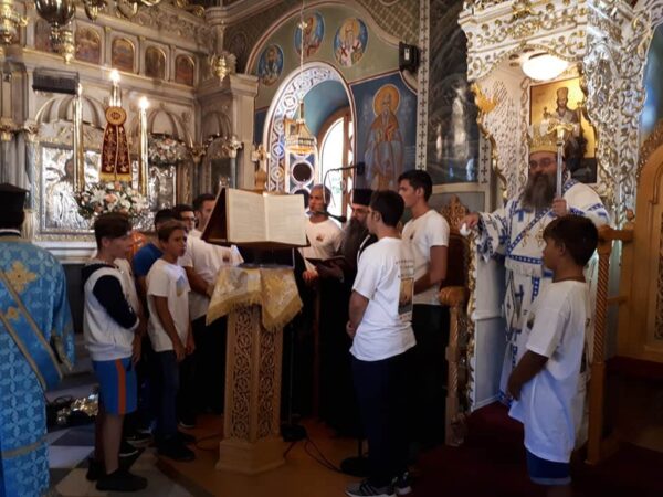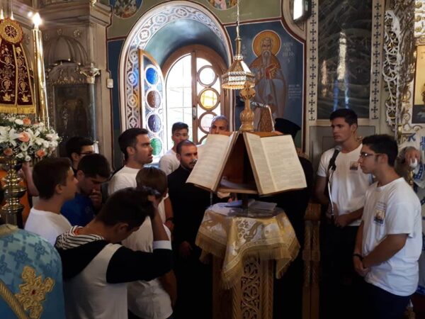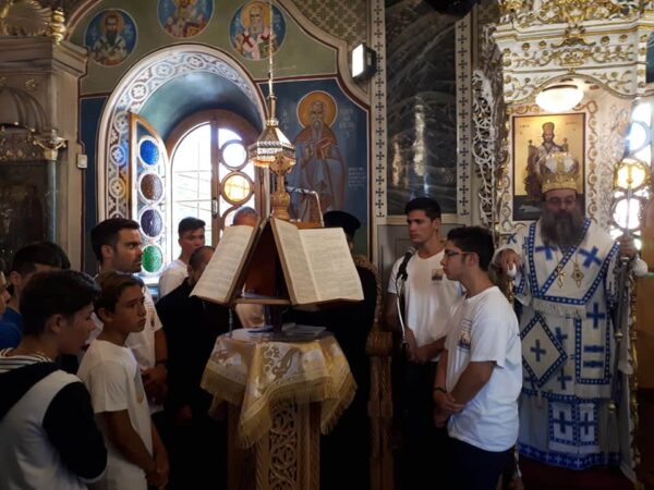 Με τον Αρχηγό Πρεσβύτερο π. Ιωάννη Κατσούνη και τον Υπαρχηγό κ. Παντελή Κριτούλη, όλα τα παιδιά , μαθητές Σχολείων και φοιτητές ΑΕΙ, συμμετέσχον και έψαλαν στην Θεία Λειτουργία που ετέλεσε ο πνευματικός τους πατέρας Σεβ. Μητροπολίτης Χίου, Ψαρών και Οινουσσών κ. Μάρκος, ο οποίος προ της απολύσεως τους εδώρισε ένα μικρό επιστήθιο σταυρό.