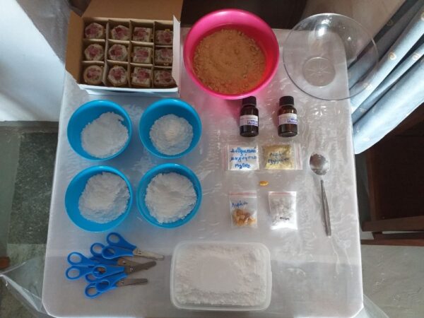 Στη συνέχεια, τα παιδιά, με τη βοήθεια των Καθηγητών τους, κατασκεύασαν το δικό τους μοσχοθυμίαμα, το οποίο τοποθέτησαν σε μικρά σακουλάκια και το πρόσφεραν στα Κατηχητικά Σχολεία της Σύρου, προκειμένου, διά της διαθέσεώς του, να ενισχυθεί η εκδρομή τους.