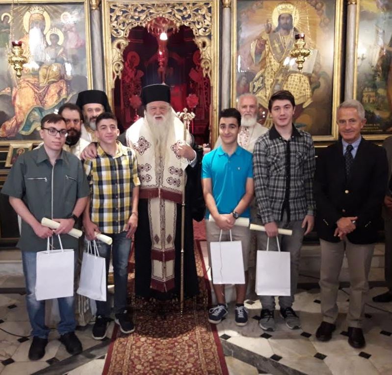 Ακολούθως, ο σεπτός Ποιμενάρχης προσέφερε τα ίδια δώρα σε τέσσερις μαθητές Λυκείων του Αιγίου που πρώτευσαν στις πανελλαδικές εξετάσεις και συγκεκριμένα στους Γρηγόριο Καστή από το ΕΠΑΛ (εισήχθη πρώτος στη Σχολή Μηχανολόγων και Αεροναυπηγών Μηχανικών με 19.305 μόρια), Κωνσταντίνο Γιαλελή από το ΕΠΑΛ (εισήχθη πρώτος στη Σχολή Βιολογίας Πάτρας με 18.715 μόρια), Λάμπρο Πρίτζιο από το 2ο Γενικό Λύκειο (εισήχθη πρώτος στη Σχολή Ηλεκτρολόγων Μηχανικών και Τεχνολογίας Υπολογιστών Πάτρας με 19.440 μόρια) και Ιωάννη Παπαγεωργίου από το 2ο Γενικό Λύκειο (εισήχθη πρώτος στη Σχολή Ηλεκτρολόγων Μηχανικών και Μηχανικών Ηλεκτρονικών Υπολογιστών Αθήνας με 19.487 μόρια).