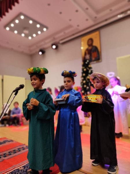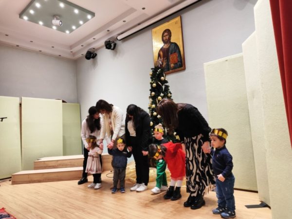 Παρών όπως πάντα ο Σεβασμιώτατος Μητροπολίτης Γρεβενών κ. Δαβίδ, που μαζί με τους γονείς, τους παππούδες και τους φίλους γέμισαν την αίθουσα και απόλαυσαν τα δώρα που προσέφεραν με τον τρόπο τους τα παιδιά μας στο Θείο Βρέφος.