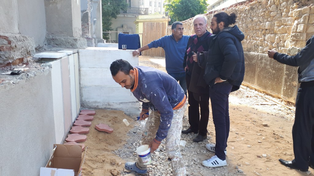 «Προς το παρόν πραγματοποιούμε την αποκατάσταση του Ι. Ναού Αγ. Κωνσταντίνου και Ελένης που ανήκει στην Ελληνική Κοινότητα Καΐρου. Πρόκειται για ένα Αρχιτεκτονικό αριστούργημα Έλληνο- Βυζαντινού μνημείου, με εξαίρετα διακοσμητικά στοιχεία εξωτερικά και εσωτερικά του Ι. Ναού και πολύ αξιόλογη εσωτερική διακόσμηση.