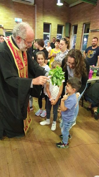 Στη συνέχεια, ο π. Νικόλαος Μποζίκης τέλεσε τον καθιερωμένο Αγιασμό και μετέφερε τις ευλογίες του Σεβασμιωτάτου Αρχιεπισκόπου Αυστραλίας κ. Μακαρίου.