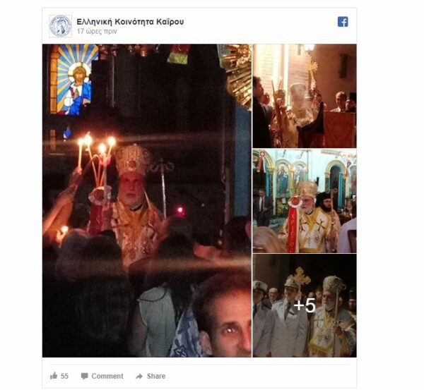 Σε κάθε Ορθόδοξο ναό, το Άγιο Φως φώτισε την ψυχή των Αιγυπτιωτών του Καϊρου. Στην Παναγίτσα Ηλιουπόλεως και στον Άγιο Νικόλαο Χαμζάουι, από άκρη σε άκρη, αντήχησε το Χριστός Ανέστη.