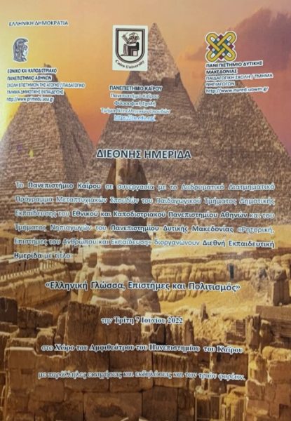 Την ημερίδα, η οποία έγινε την Τρίτη 7 Ιουνίου 2022, χαιρέτησαν από την Αιγυπτιακή πλευρά ο Κοσμήτορας της Φιλοσοφικής Σχολής του Πανεπιστημίου του Καΐρου, κ. Sherif Shahin, o ομότιμος Καθηγητής του Τμήματος της Νεοελληνικής Φιλολογίας, πρώην Κοσμήτορας της Φιλοσοφικής Σχολής και πρώην αντιπρύτανης του Πανεπιστημίου του Καΐρου, κ. Hamdy Ibrahim, ο Πρόεδρος του Τμήματος της Νεοελληνικής Φιλολογίας του Πανεπιστημίου του Καΐρου, καθηγητής Hisham Darwish και η καθηγήτρια Νεοελληνικής Λογοτεχνίας και της Διδακτικής της, και Διευθύντρια του Μ.Π.Σ, κ. Γεωργία (Τζίνα) Καλογήρου.