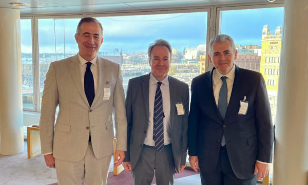 Μάξιμος Χαρακόπουλος και Στάθης Κωνσταντινίδης με τον πρόεδρο της Ομοσπονδίας Ελληνικών Κοινοτήτων Σουηδίας.