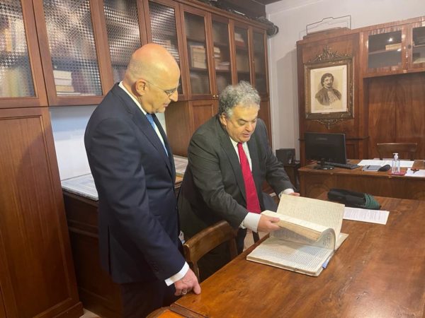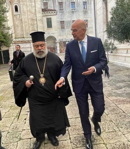Το Ελληνικό Ινστιτούτο Βυζαντινών και Μεταβυζαντινών Σπουδών Βενετίας επισκέφθηκε σήμερα ο υπουργός Εξωτερικών, Νίκος Δένδιας ο οποίος συναντήθηκε με τον Μητροπολίτη Ιταλίας και Έξαρχου Νοτίου Ευρώπης κ. Πολύκαρπο, και τον Πρόεδρο της Ελληνικής Ορθόδοξης Κοινότητας Βενετίας, Δημήτριο Ζαφειρόπουλο.