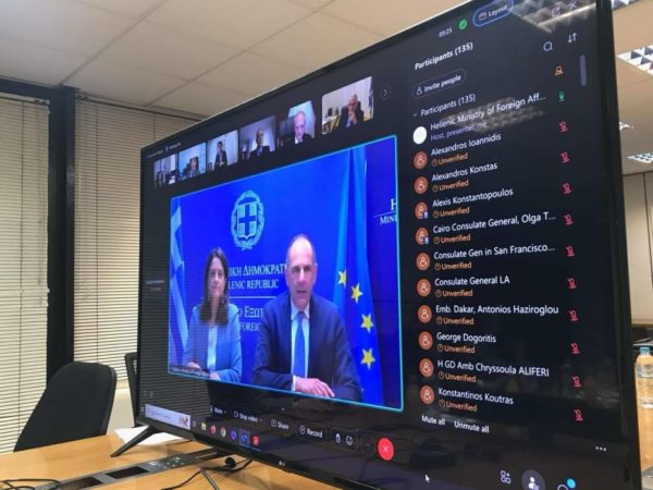 Ο Υπουργός Εξωτερικών Γιώργος Γεραπετρίτης και η Υπουργός Εσωτερικών Νίκη Κεραμέως συμμετείχαν την Πέμπτη 18 Απριλίου σε τηλεδιάσκεψη με τους επικεφαλής των Πρεσβειών και των προξενικών Αρχών της Ελλάδας στο εξωτερικό, με αντικείμενο την επιστολική ψήφο.