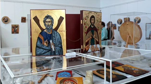 Είπε ότι η συγκεκριμένη έκθεση αποτελεί παρουσίαση έργων από καλλιτέχνες και σπουδαστών Βυζαντινής αγιογραφίας.