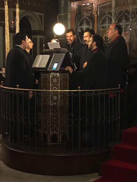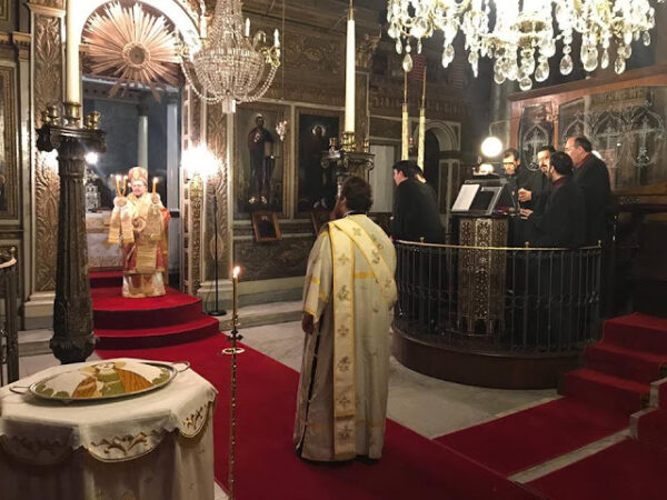 Στο αναλόγιο έψαλλε ο ιεροψάλτης της Κοινότητας, κ. Χρήστος Ψωμιάδης, μαζί με όμιλο ιεροψαλτών από την Πτολεμαΐδα.