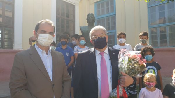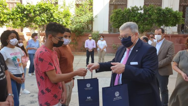 Παρουσία του Γενικού Προξένου της Ελλάδας στην Αλεξάνδρεια κ. Αθανάσιου Κοτσιώνη, ο Γενικός Γραμματέας ευχαρίστησε όλους όσοι συμβάλλουν στην εύρυθμη λειτουργία των σχολείων, όλους τους εκπαιδευτικούς, την Ελληνική Κοινότητα Αλεξανδρείας για τις προσπάθειες που καταβάλλει να συντηρεί τον Ελληνισμό και να σηκώνει τόσο ψηλά την ελληνική σημαία, αλλά και το αιγυπτιακό κράτος για την πρόνοια να φιλοξενεί και να έχει στην αγκαλιά του όλα αυτά τα ελληνόπουλα σήμερα.