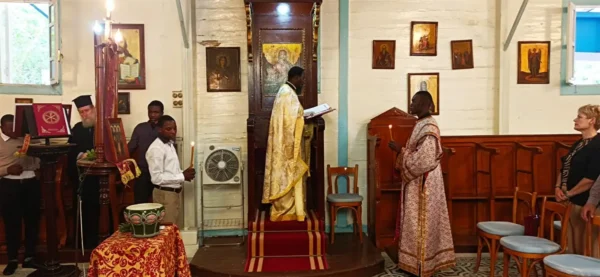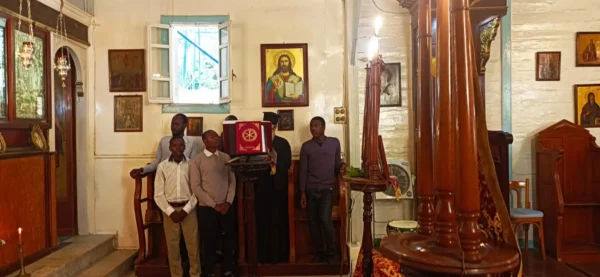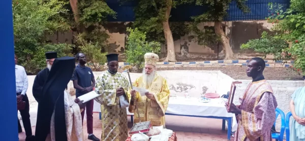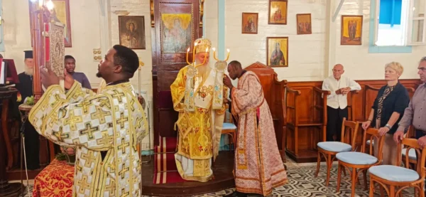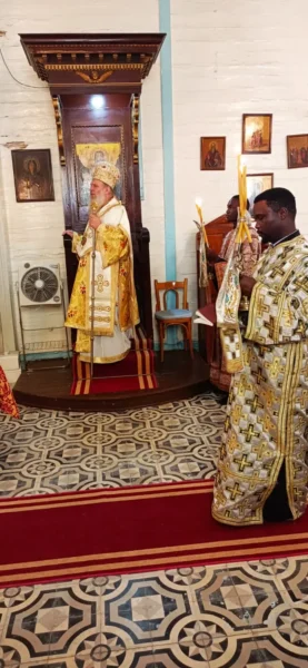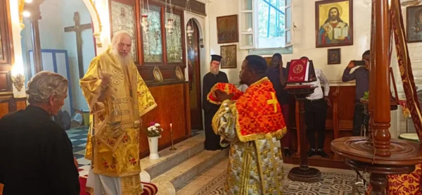 Ιερούργησε ο Σεβασμιώτατος Μητροπολίτης Ταμιάθεως κ. Γερμανός, Επίτροπος της Ιεράς Μονής Οσίου Σάββα του Ηγιασμένου, με τον Πανοσιολογιότατο Αρχιμανδρίτη κ. Ισαάκ, Σχολάρχη της Πατριαρχικής Σχολής.