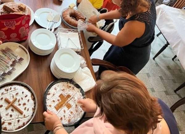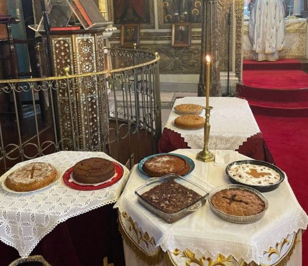 Οι πιστοί προσκόμισαν τις πατροπαράδοτες φανουρόπιτες, που ευλογήθηκαν και μοιράστηκαν στο εκκλησίασμα κατά τη διάρκεια του κεράσματος.