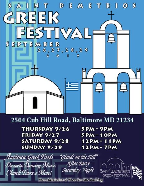 Πρώτος της σταθμός είναι η ενορία του  Άγιου Δημήτριου στη Βαλτιμόρη όπου αυτές τις ημέρες λαμβάνει χώρα και το Φεστιβάλ της Ομογένειας.