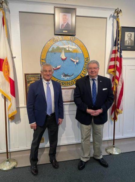 Ο κ. Χρυσουλάκης είχε επίσης συνάντηση με τον Δήμαρχο του Τάρπον Σπρινγκς, κ. Χρυσόστομο Αλαχούζο, ο οποίος τον υποδέχθηκε με ιδιαίτερη θερμότητα στο γραφείο του προσφέροντάς του ως αναμνηστικό δώρο το αγαλματίδιο του Έλληνα σφουγγαρά. Ο κ. Χρυσουλάκης ευχαρίστησε τον κ. Αλαχούζο για όσα έχει καταφέρει χαρακτηρίζοντάς τον άξιο δήμαρχο και άξιο Έλληνα και πατριώτη, επισημαίνοντας ότι έχει καταφέρει να δώσει ελληνικό χρώμα στην πόλη γεμίζοντας τη με ελληνικές σημαίες, γεγονός που προκαλεί συγκίνηση σε κάθε Έλληνα. Ο Γενικός Γραμματέας επισκέφθηκε επίσης τα γραφεία της Πανελλήνιας Ομοσπονδίας Φλόριδας στο Τάρπον Σπρινγκς, όπου ενημερώθηκε από τον πρόεδρο Μάικ Αλεξάνδρου σχετικά με τις δράσεις τους, ενώ από την πλευρά του ο κ. Χρυσουλάκης τους ενημέρωσε για τις πρωτοβουλίες της Γενικής Γραμματείας που έχουν σκοπό να συνδέσουν την ελληνική ομογένεια με το μητροπολιτικό κέντρο, αλλά και για όσα προβλέπονται με την ψήφο των Αποδήμων, αλλά και την καλύτερη εξυπηρέτηση των ομογενών στα ελληνικά προξενεία, ανταλλάσσοντας ιδέες και σκέψεις, ώστε να είναι ακόμη πιο αποτελεσματική η συνεργασία τους με τη Γενική Γραμματεία. Κατά τη διάρκεια της επίσκεψης στο Τάρπον Σπρινγκς, ο επικεφαλής της παρέλασης κ. Σισώης προσκάλεσε τον Γενικό Γραμματέα κ. Χρυσουλάκη να παρευρεθεί στην παρέλαση στον Τάρπον Σπρινγκς με την ευκαιρία των εορτασμών για την 25η Μαρτίου, η οποία θα λάβει χώρα στις 20 Μαρτίου.