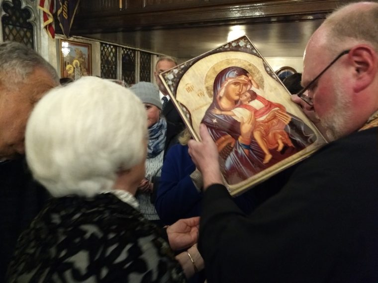 Την Παρασκευή 5 Απριλίου με την ευκαιρία της Δ’ Στάσης των Χαιρετισμών της Υπεραγίας Θεοτόκου, τέθηκε σε προσκύνημα στον Ιερό Ναό των Τριών Ιεραρχών του Μπρούκλιν η θαυματουργή εικόνα της Παναγίας Καρδιώτισσας προερχόμενη από την Ουκρανική Ορθόδοξη Εκκλησία του Αγ. Γεωργίου στην Πενσυλβάνια.
