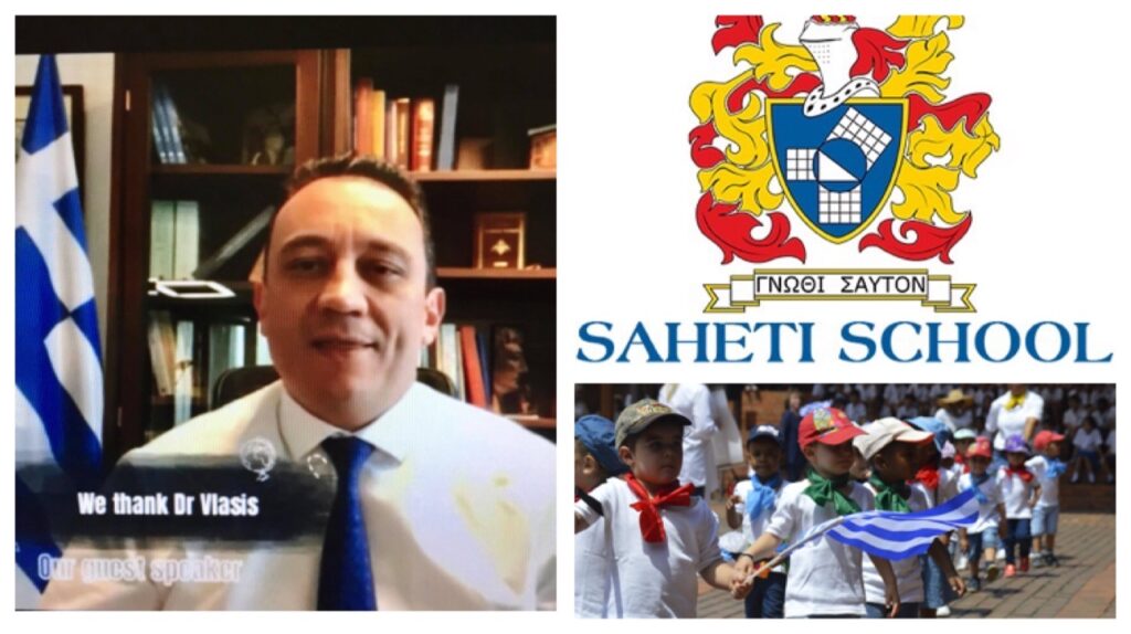 Χαιρετισμό στην διαδικτυακή εκδήλωση, για τους Ιδρυτές και τα Γενέθλια της Σχολής Σαχέτι, που διοργάνωσε η Σχολή Σαχέτι στη Ν.Αφρική, χθες, Τρίτη 2 Ιουνίου, απηύθυνε ο υφυπουργός Εξωτερικών, αρμόδιος για θέματα Απόδημου Ελληνισμού, Κώστας Βλάσης.