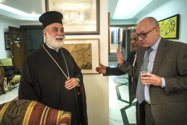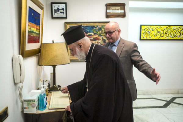 «Σας ευχαριστώ που μας τιμήσατε σήμερα στην Πρεσβευτική κατοικία. Είναι τιμή μου πού έχουμε σήμερα μαζί μας, τον Πρέσβη της Ελλάδας, τον Πρέσβη της Ευρωπαϊκής Ένωσης, τον Σεβασμιώτατο, όπως επίσης και την Γενική Πρόξενο της Ελλάδας».