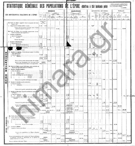 Εάν δείτε το συνολικό πληθυσμό στο συγκεντρωτικό πίνακα, θα δείτε πως στην Ήπειρο ο ελληνικός πληθυσμός αποτελούνταν από 440250 Έλληνες, ενώ ο αλβανικός πληθυσμός από 277250.