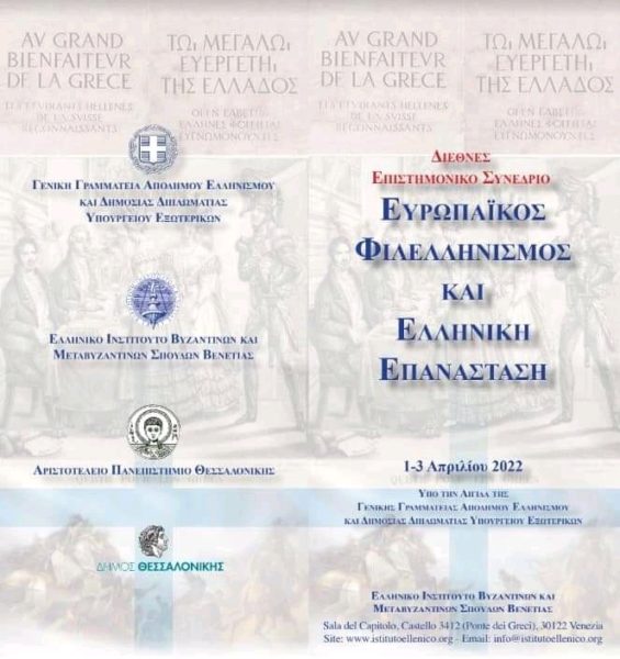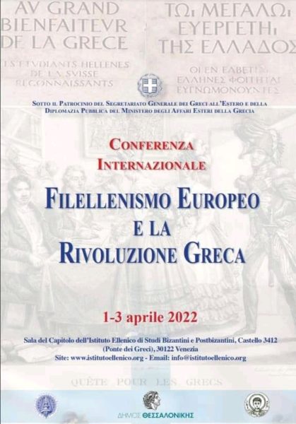Με χαιρετισμό του Γενικού Γραμματέα Απόδημου Ελληνισμού και Δημόσιας Διπλωματίας του Υπουργείου Εξωτερικών, κ. Ιωάννη Χρυσουλάκη, εγκαινιάστηκε διεθνές επιστημονικό συνέδριο του Ελληνικού Ινστιτούτου Βυζαντινών και Μεταβυζαντινών Σπουδών Βενετίας με θέμα «Ευρωπαϊκός Φιλελληνισμός και Ελληνική Επανάσταση».