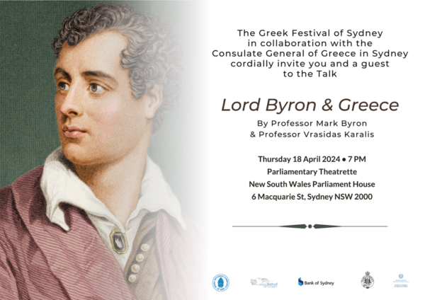 Φέτος, στην επέτειο των 200 ετών από τον θάνατο του Λόρδου Βύρωνα (19 Απριλίου 1824), το Γενικό Προξενείο της Ελλάδος στο Σύδνεϋ συνεργάζεται με το Ελληνικό Φεστιβάλ Σύδνεϋ, συνδιοργανώνοντας μια εκδήλωση αφιερωμένη στη ζωή και το έργο του.