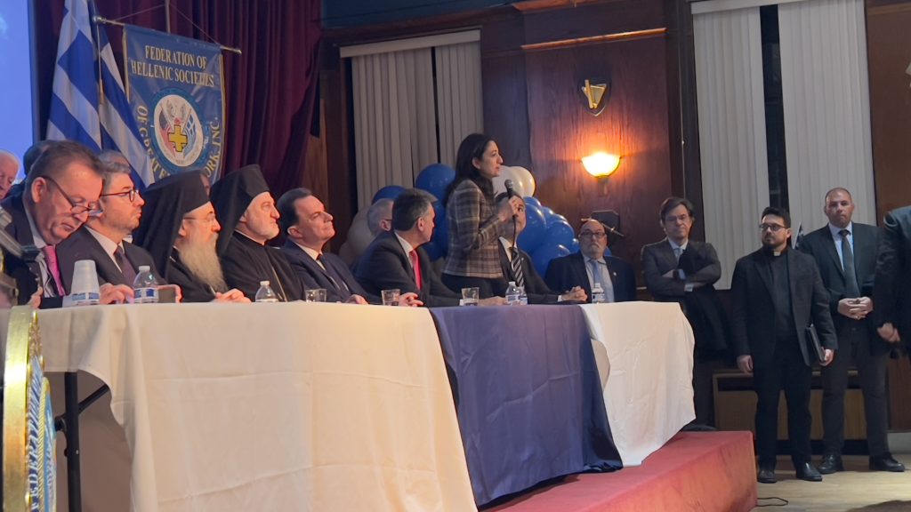 Η κεντρική αίθουσα συνεδριάσεων της έδρας της Ομοσπονδίας Ελληνικών Σωματείων Μείζονος Νέας Υόρκης έσφυζε από κόσμο, ενώ το «παρών» έδωσε το σύνολο, σχεδόν, των επισήμων, που συμμετέχει στις φετινές εκδηλώσεις της Εθνικής Παλιγγενεσίας. Ειδικότερα, στο Σταθάκειο προσήλθαν ο πρόεδρος του ΠΑΣΟΚ, Νίκος Ανδρουλάκης, η γενική πρόξενος της Ελλάδας στη Νέα Υόρκη, Ιφιγένεια Καναρά, ο Αρχιεπίσκοπος Αμερικής κ. Ελπιδοφόρος, ο Μητροπολίτης Πατρών κ. Χρυσόστομος, ο αντιπρόεδρος της Βουλής, Γεώργιος Γεωργαντάς, οι βουλευτές Ανδρέας Κατσανιώτης και Βασίλης Κόκκαλης, ο γενικός γραμματέας Δημοσίων Επενδύσεων, Δημήτρης Σκάλκος, ο περιφερειάρχης Βορείου Αιγαίου, Κωνσταντίνος Μουτζούρης και η δήμαρχος Τήλου, Μαρία Καμμά.