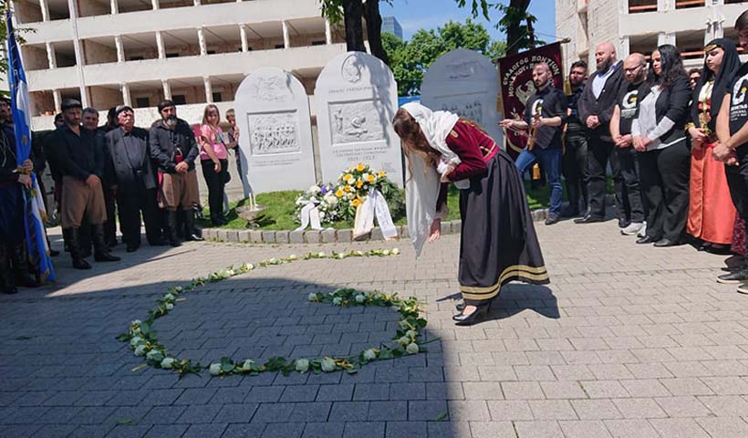 Έπειτα πραγματοποιήθηκε εκδήλωση μνήμης με κατάθεση στεφάνων στο μνημείο Γενοκτονίας των Ποντίων. Εκεί οι Κρήτες τραγούδησαν ριζίτικα και χόρεψαν ανωγειανό πηδηχτό, ως φόρο τιμής στους πεσόντες της Μάχης της Κρήτης, αλλά και των θυμάτων της Γενοκτονίας των Ελλήνων του Πόντου. Παιδιά και νέοι κρατούσαν στα χέρια λευκά τριαντάφυλλα τα οποία τα τοποθέτησαν μπροστά στο μνημείο σχηματίζοντας το γράμμα “G” από τη λέξη Genocide.