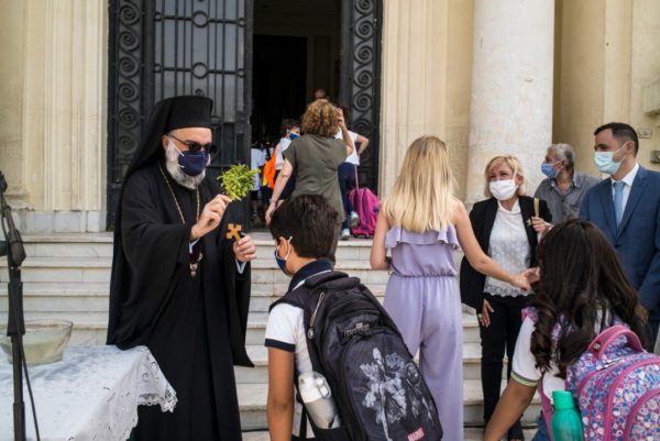 Τον αγιασμό τέλεσε ο Αρχιμανδρίτης π. Στέφανος ο οποίος μετέφερε τις ευχές και την αγάπη του Μακαριώτατου Πάπα και Πατριάρχη Αλεξανδρείας κ.κ. Θεόδωρου Β’ και του Σεβασμιοτάτου Μητροπολίτου Μέμφιδος κ. Νικοδήμου. Ο ίδιος ευχήθηκε στα παιδιά να έχουν μια καλή και ευλογημένη σχολική χρονιά κατά την διάρκεια της οποίας να αποκτήσουν γνώσεις, αλλά τους προέτρεψε να μην μείνουν μόνο σε αυτό το επίπεδο. Να καλλιεργήσουν τον εαυτό τους και να αποκτήσουν αρετές, που θα τους συντροφεύσουν και θα είναι πολύτιμοι αρωγοί τους σε όλο τον βίο τους.