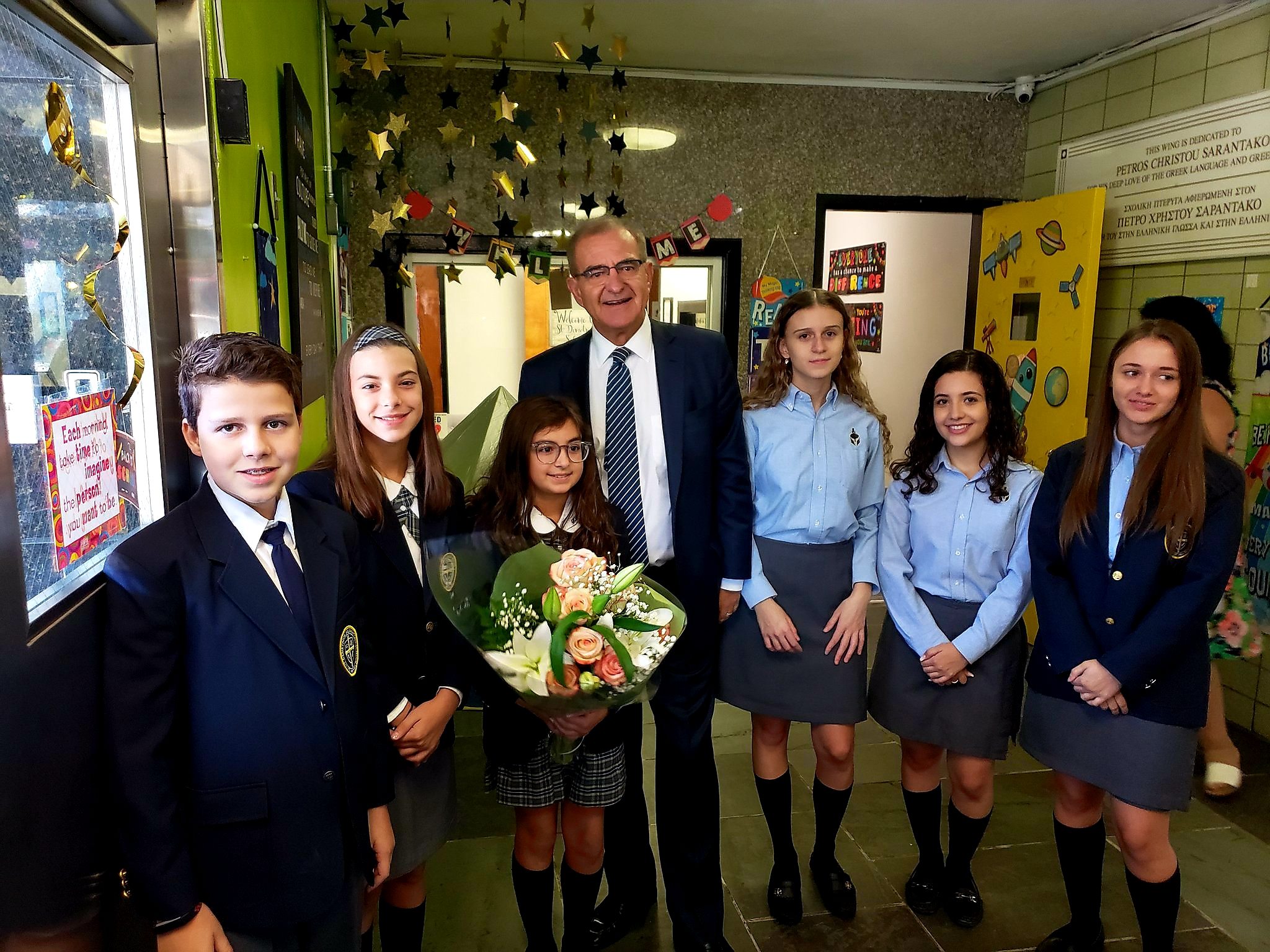 Εν συνεχεία επισκέφθηκαν το σχολείο του Αγίου Νικολάου «Ουίλλιαμ Σπυρόπουλος» στο Φλάσινγκ.