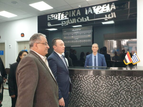 Ο υφυπουργός, ολοκληρώνοντας την επίσκεψή του στην Αίγυπτο, ξεναγήθηκε στο Ελληνικό Νοσοκομείο Καΐρου, από τον Πρόεδρο της Ελληνικής Κοινότητας κ. Χρήστο Καβαλή και τον Προϊστάμενο Διοίκησης του Ε.Ν.Κ και Ταμία της Ε.Κ.Κ κ. Αντώνη Ιορδανίδη.