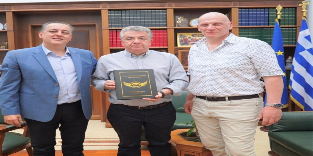 Την προώθηση θεμάτων της ομογένειας όπου γης και του Παγκόσμιου Συμβουλίου Κρητών συζήτησαν την περασμένη Παρασκευή σε συνάντηση τους στην Περιφέρεια Κρήτης, ο περιφερειάρχης Σταύρος Αρναουτάκης με τον πρόεδρο του Παγκόσμιου Συμβουλίου Κρητών, Γιάννη Νικολακάκη και τον πρόεδρο της Κρητικής Ομοσπονδίας Αυστραλίας -Ωκεάνιας, Αντώνη Τσουρδαλάκη.
