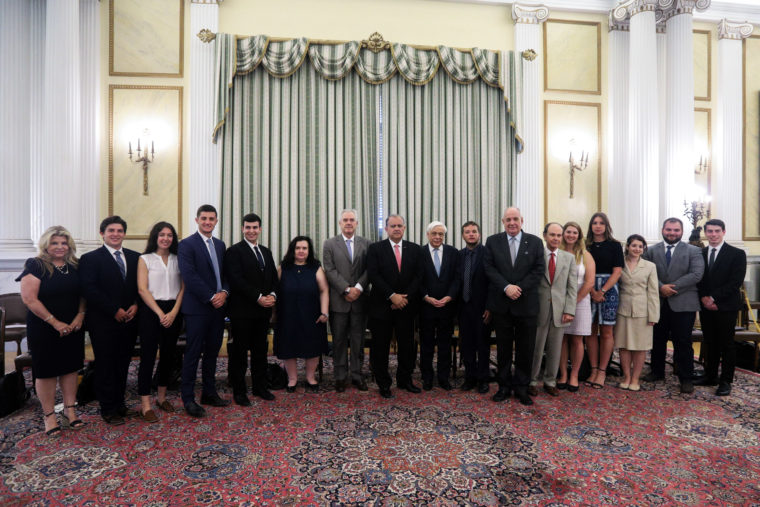 «Είμαστε οι πρώτοι που αντιλαμβανόμαστε την αξία της Ειρήνης. Αλλά είμαστε και οι πρώτοι που αντιλαμβανόμαστε τι σημαίνει η υπεράσπιση του Διεθνούς και του Ευρωπαϊκού Δικαίου στο σύνολό τους» τόνισε ο Πρόεδρος της Δημοκρατίας κ. Προκόπης Παυλόπουλος κατά την συνάντησή του με ομάδα Ελληνο-Αμερικανών φοιτητών του Αμερικανο-Ελληνικού Ινστιτούτου (AHI) με επικεφαλής τον πρόεδρο και διοικητικό εκτελεστικό διευθυντή Nick Larigakis στο Προεδρικό Μέγαρο.