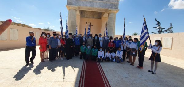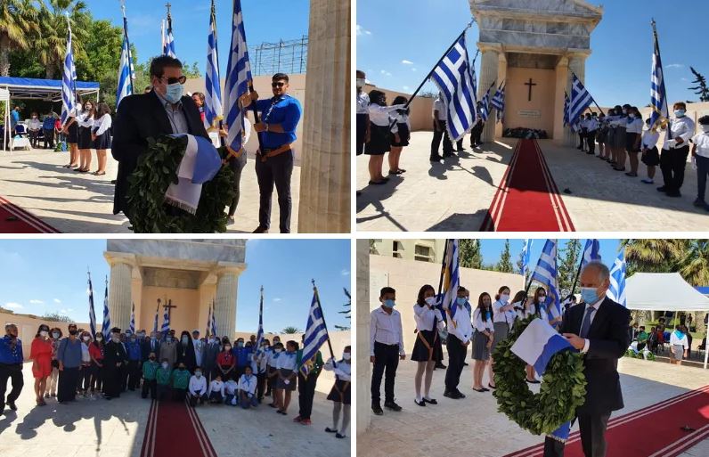 Εκπρόσωποι της Ελληνικής Κοινότητας Καΐρου και της Ελληνικής Κοινότητας Αλεξανδρείας, μαζί με εκπροσώπους μαθητές και εκπαιδευτικούς από τα Ελληνικά Σχολεία απότισαν φόρο τιμής σε αγωνιστές και πεσόντες.