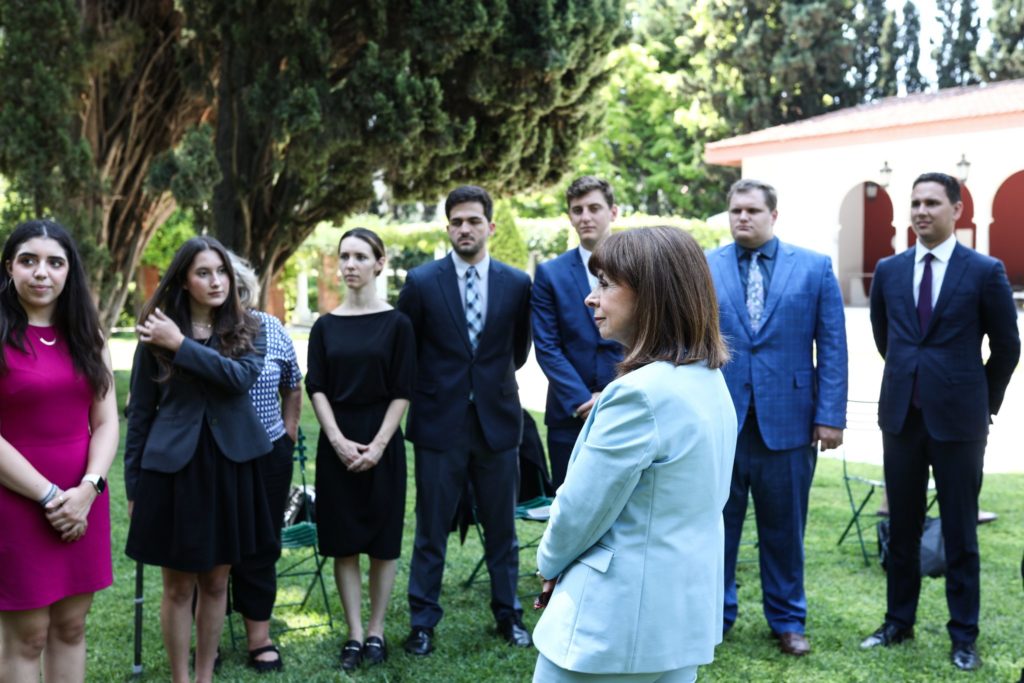 H Πρόεδρος της Δημοκρατίας Κατερίνα Σακελλαροπούλου δέχθηκε αντιπροσωπεία Ελληνοαμερικανών φοιτητών του «American Hellenic Institute Foundation», που πραγματοποιούν την 13η ετήσια εκπαιδευτική επίσκεψή τους στην Ελλάδα.