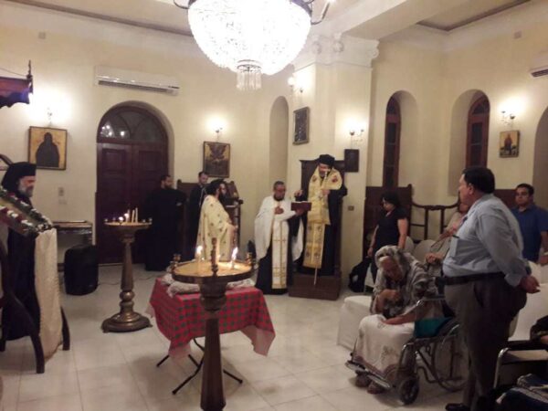 Χοροστάτησε, ο Επίσκοπος Βαβυλώνος Θεόδωρος υπό τον πρωτοψάλτη της Ε.Κ.Κ κ. Ιωάννη Κούντρια, ενώ παραβρέθηκε ο Ταμίας και Προϊστάμενος της Εφορείας Υγείας και Οίκου Ευγηρίας, κ. Αντώνης Ιορδανίδης. Παρούσα ήταν και η διευθύντρια του Ελληνικού Γηροκομείου, κ. Αγγέλα Χαραλαμποπούλου.