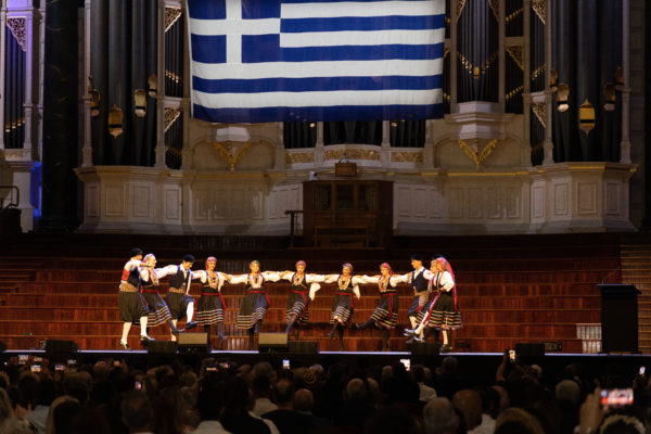 Στη συνέχεια, ο εορταστικός παλμός μεταφέρθηκε στο Δημαρχείο του Σύδνεϋ, το οποίο πλημμύρισε με ελληνικούς ήχους, ενώ μια μεγάλη γαλανόλευκη σημαία δέσποζε στην κεντρική σκηνή της επιβλητικής αίθουσάς του.