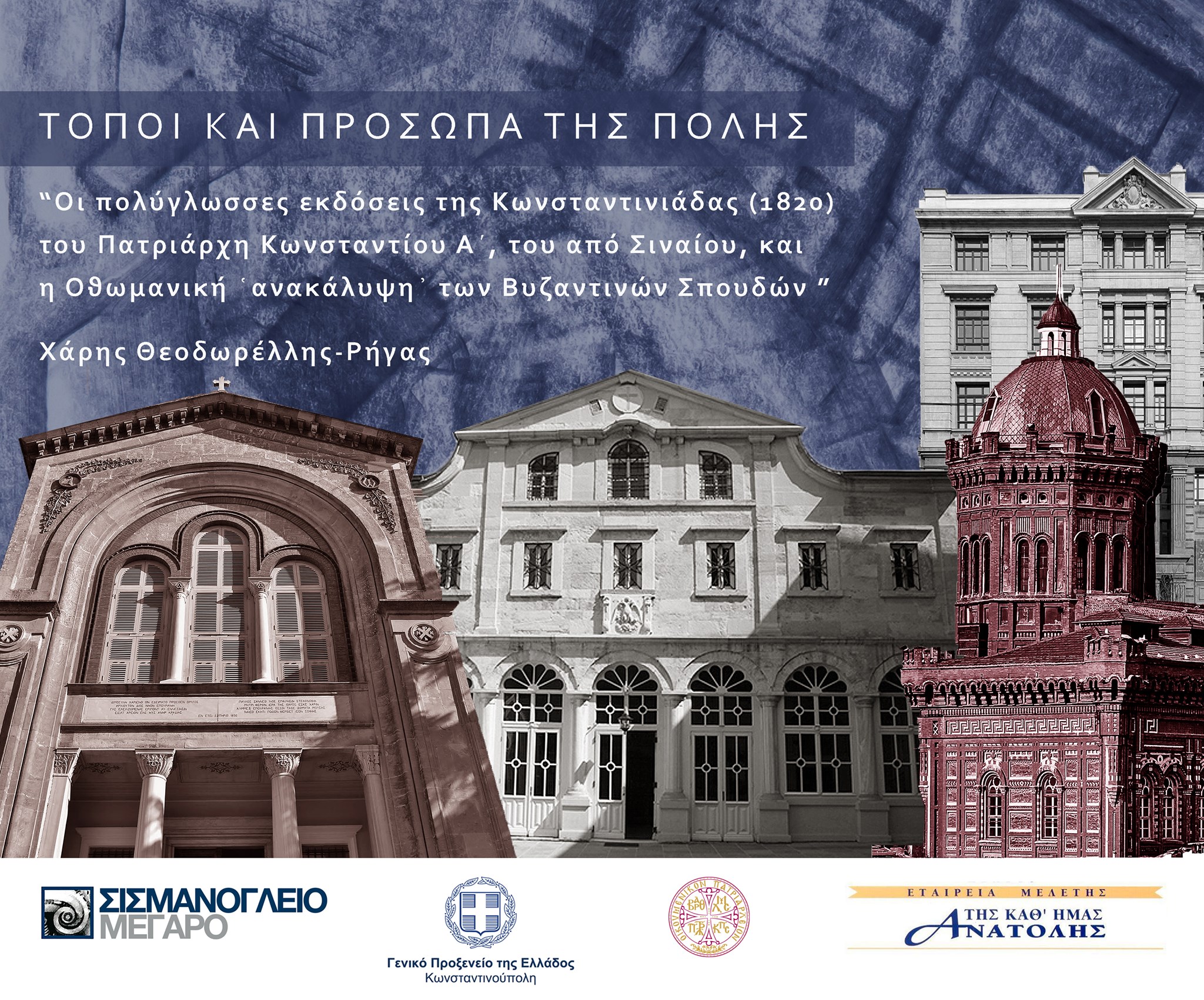 Χάρης Θεοδωρέλλης-Ρήγας, Λέκτορας Αρχαίων Ελληνικών και Λατινικών, Τμήμα Αρχαιολογίας και Ιστορίας της Τέχνης, Πανεπιστήμιο Κοτς, Oι πολύγλωσσες εκδόσεις της Κωνσταντινιάδος (1820) του Πατριάρχη Κωνσταντίου Α´, του από Σιναίου, και η Οθωμανική ῾ανακάλυψη᾽ των Βυζαντινών Σπουδών.