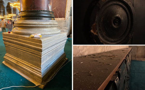 Μάλιστα χρήστης – σύμφωνα με την ιστοσελίδα Gazete Duvar- ανήρτησε στο twitter φωτογραφίες στις οποίες απεικονίζονταν δυο γυναίκες να «παίρνουν κομμάτια από τον τοίχο του κτιρίου και να τα τοποθετούν σε σακούλες», τονίζοντας ότι «παλαιότερα απαγορεύονταν ακόμα και οι φωτογραφίες με φλας γιατί υπήρχε κίνδυνος να καταστραφούν οι τοίχοι. Τώρα αποκολλούν κομμάτια από τους τοίχους και τα τοποθετούν σε σακούλες ως ενθύμια. Πού είναι ο σεβασμός, η προστασία της πολιτιστικής κληρονομιάς στην Αγία Σοφία που είναι όρθια εδώ και 1485 χρόνια; Προτού γίνουν χειρότερα τα πράγμα.