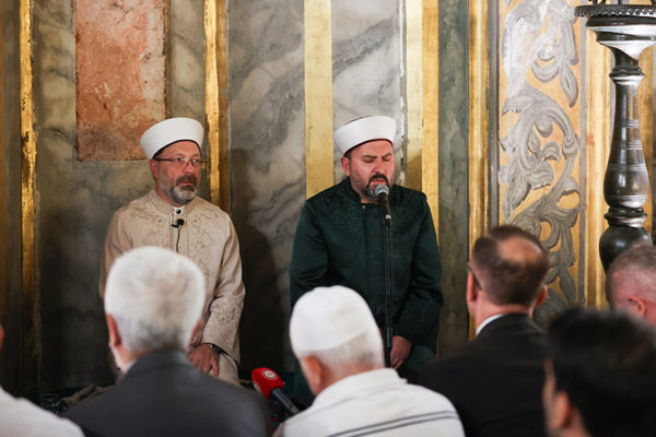 Ανήμερα της φετινής θλιβερής επετείου, οι Τουρκικές αρχές «τίμησαν» τη μετατροπή της Αγίας Σοφίας σε τζαμί με πρωινή προσευχή στη οποία παρέστησαν ο Πρόεδρος της Διεύθυνσης Θρησκευτικών Υποθέσεων, Αλί Ερμπάς, καθώς και ο Κυβερνήτης της Κωνσταντινούπολης, Νταβούτ Γκιουλ.