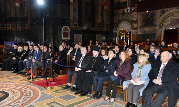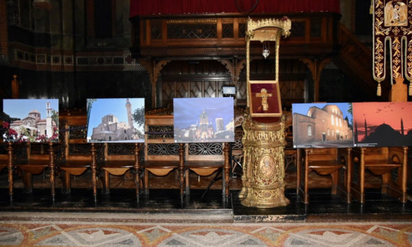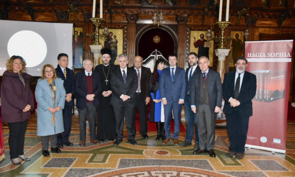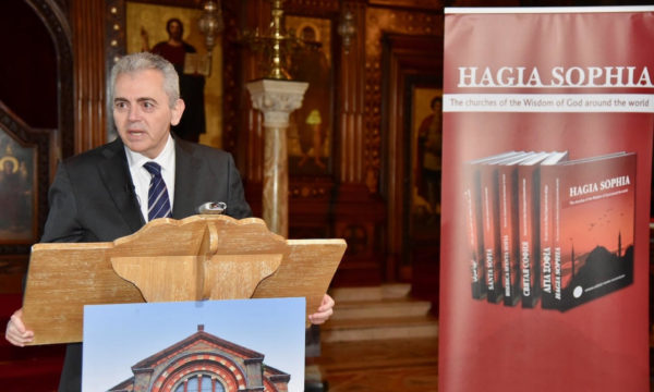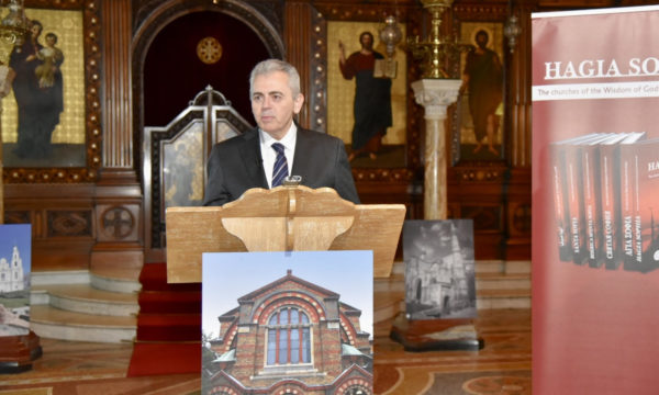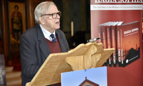 Ο Μάξιμος Χαρακόπουλος «ξεδιπλώνει» την καμπάνια της ΔΣΟ για την Αγιά Σοφιά στον καθεδρικό Ναό της Αγίας Σοφίας στο Λονδίνο