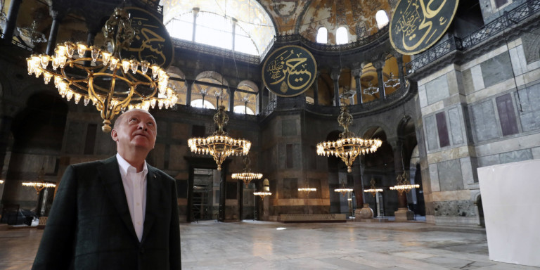 «Η εκνευριστική παράσταση του Ερντογάν» τιτλοφορείται σημερινό άρθρο της ηλεκτρονικής έκδοσης του περιοδικού «Der Spiegel» σχετικά με την μουσουλμανική προσευχή που πραγματοποιείται σήμερα στην Αγία Σοφία. Ο αρθρογράφος σημειώνει ότι o Τούρκος Πρόεδρος τιμά την φήμη του ως «έμπειρου λαϊκιστή», ο οποίος με κάθε είδους «μαγικά» επιχειρεί αντιμετωπίσει την πτώση της δημοτικότητάς του.