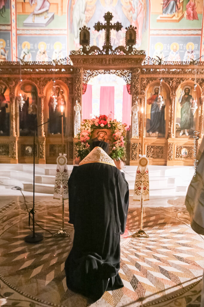 Ο Σεβασμιώτατος κατόπιν έψαλε την φήμη του Παναγιωτάτου Οικουμενικού μας Πατριάρχου κ.κ. Βαρθολομαίου και ακολούθως, ως ένδειξη ελπίδας και προσδοκίας, οι καμπάνες ήχησαν χαρμόσυνα και σήμαναν την έναρξη της Ακολουθίας του Ακαθίστου Ύμνου.