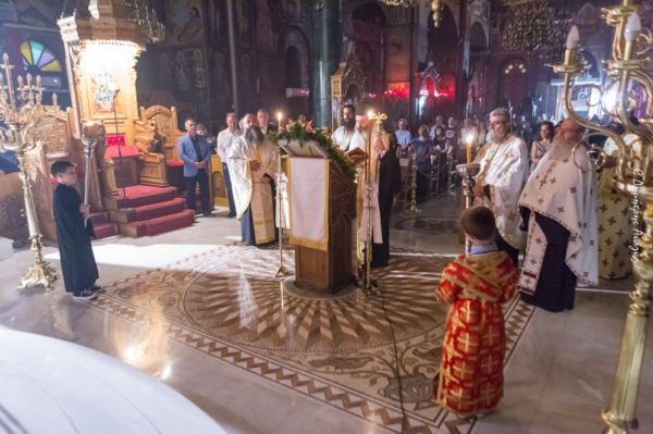 Και απόψε εδώ από την Μητρόπολή μας, από την καθέδρα, από το σπίτι της Παναγίας μας, από το τάμα του Γένους, από το Ναό του Ευαγγελισμού της Θεοτόκου, θα απευθύνουμε την προσευχή μας και τη δέηση μας, θα ανοίξουμε την καρδιά μας θα στείλουμε τον στεναγμό των δακρύων μας στον ουρανό, με την ελπίδα, ότι το δίκαιο, ότι ο σεβασμός, η τιμή στα ιερά και τα όσια, θα νικήσουν τη βαρβαρότητα, την μισαλλοδοξία, την έπαρση και την αλαζονεία. Ας ψάλλουμε αδελφοί μου όλοι μαζί στην Παναγία μας, το «Τη Υπερμαχω»….