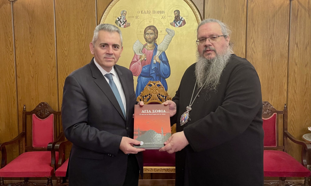 «Το αποτύπωμα της Αγίας Σοφίας της Πόλης στον ορθόδοξο κόσμο είναι ιδιαίτερα έντονο και το γεγονός αυτό το μαρτυρούν και οι εκκλησίες που και στις μέρες μας αφιερώνονται στην του Θεού Σοφία, όπως ο νεοαναγειρόμενος Ιερός Ναός στην πόλη της Λάρισας. Δυστυχώς, το σύμβολο της οικουμενικής ορθοδοξίας, η Αγία Σοφία της Κωνσταντινούπολης απειλείται πραγματικά μετά τη μετατροπή του σε τζαμί από την καθημερινή προσέλευση δεκάδων χιλιάδων επισκεπτών, που χρησιμοποιούν το μνημείο ακόμη και για τη διανυκτέρευσή τους», δήλωσε ο επικεφαλής της ΔΣΟ, που ενημέρωσε τον ιεράρχη της πρωτεύουσας της Θεσσαλίας «για την εκστρατεία ευαισθητοποίησης της διεθνούς κοινής γνώμης», που έχει αναλάβει ο διακοινοβουλευτικός θεσμός των ορθοδόξων βουλευτών, «αλλά και για τις πρόσφατες φθορές που έχει υποστεί το μνημείο, γεγονός που παραδέχονται και στηλιτεύουν ακόμη και τα τουρκικά ΜΜΕ, που, προειδοποιούν ότι αν η κατάσταση αυτή συνεχιστεί, ο Ναός θα έχει καταστραφεί ως το 2050.