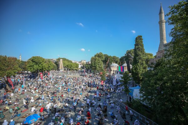 Λίγο μετά τις 14:30 το μεσημέρι, ολοκλήρωθηκε η πρώτη μουσουλμανική προσευχή στην Αγιά Σοφιά, σηματοδοτώντας έτσι την μετατροπή του Συμβόλου της Ορθοδοξίας σε τέμενος.