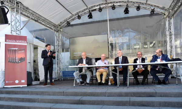 Σήμερα, όμως, είμαστε ενώπιόν σας για να σας παρουσιάσουμε με ιδιαίτερη ικανοποίηση τον Τόμο «Αγία Σοφία: Οι Ναοί της του Θεού Σοφίας ανά τον Κόσμο». Πρόκειται για ένα βιβλίο με υψηλή αισθητική και επιστημονική αρτιότητα, που εισάγει τον αναγνώστη στα μυστικά 37 Ναών που είναι αφιερωμένοι στην Αγία του Θεού Σοφία. Ναοί διεσπαρμένοι από τις εσχατιές της Ευρώπης, τη Σκωτία, μέχρι τα βάθη της Ασίας, την Κίνα. Που αποδεικνύουν και μια σαφή πνευματική ενότητα, την οποία οφείλουμε να αποκαλύψουμε και να διατηρήσουμε.