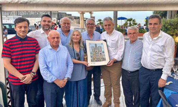 Νωρίτερα, ο Γ.Γ. της ΔΣΟ, με τα μέλη της αντιπροσωπείας, έτυχαν θερμής υποδοχής από τον δήμαρχο του Δήμου Νάξου Σικελίας κ. Giorgio Stracuzzi και τη σύμβουλο Πολιτισμού του Δήμου κα Fulvia Toscano.